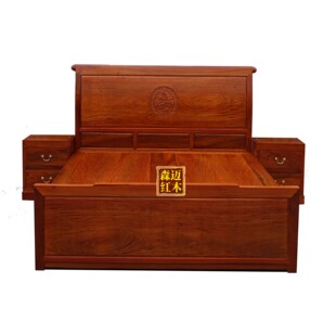 祥云中式 红木床实木床 床 光面床 红木家具 新中式 缅甸花梨红木床