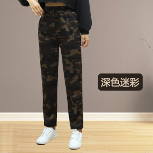 女春秋新款 高腰弹力户外休闲哈伦裤 宽松大码 裤 子劳保服 工装 迷彩裤