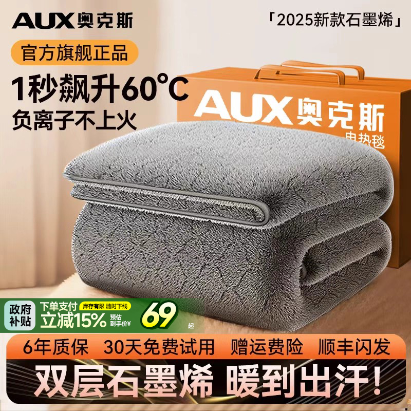 奥克斯石墨烯电热毯电褥子单人双人双控家用学生宿舍毯子官方旗舰