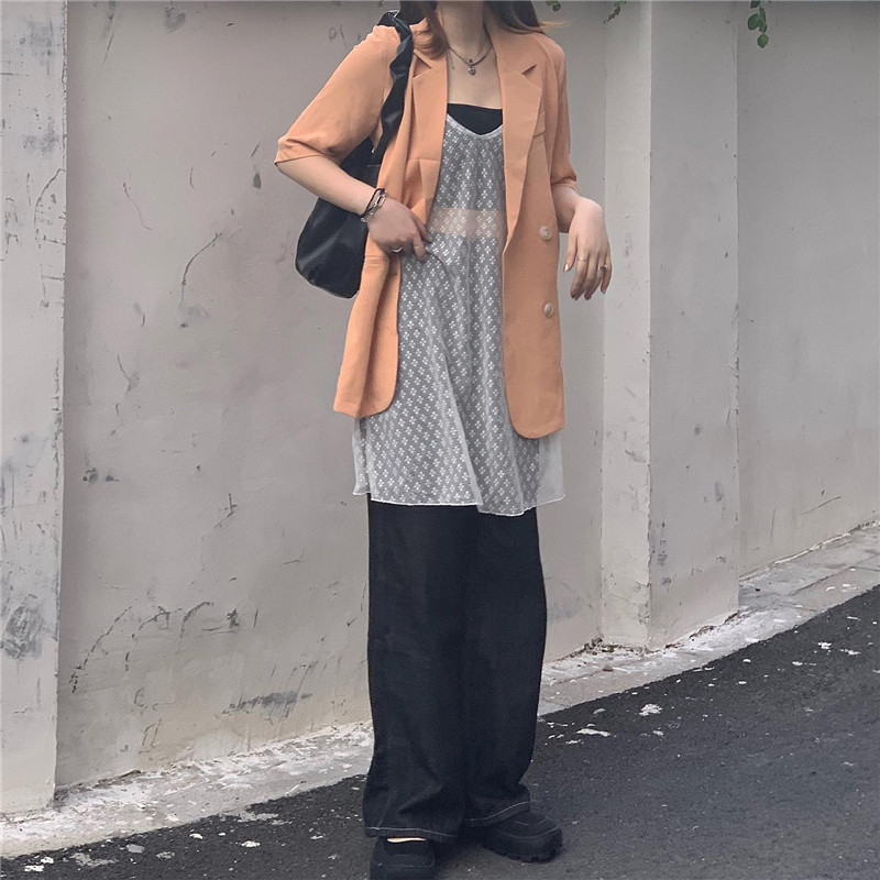 吊带连衣裙女夏 白色中长款 叠穿小天才 蕾丝罩衫