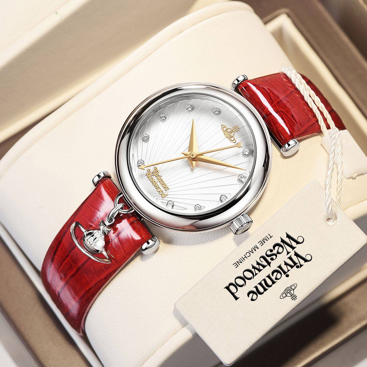 vivienne westwood红色手表薇薇安西太后皮带镶钻石英女表