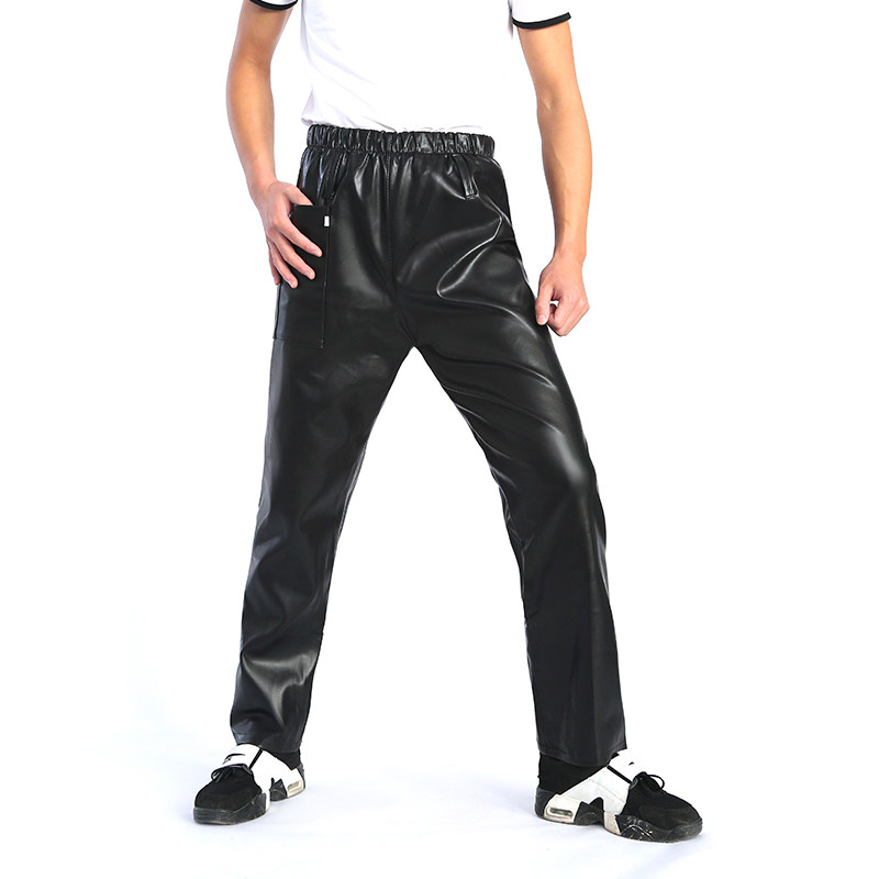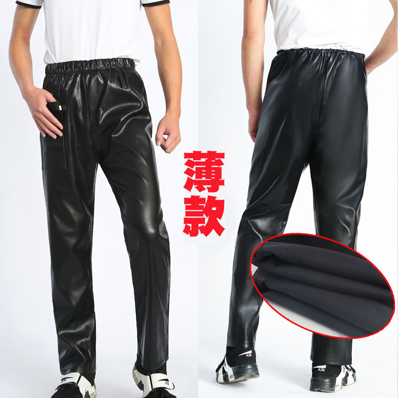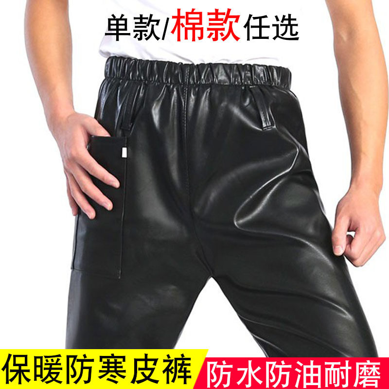 不掉皮裤 高腰宽松保暖劳保裤 加绒加厚防油防水工作裤 加厚绒男皮裤