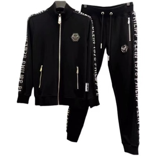 休闲运动二件套 男秋冬PP字母烫钻立领开衫 欧洲站2024时尚 潮牌套装