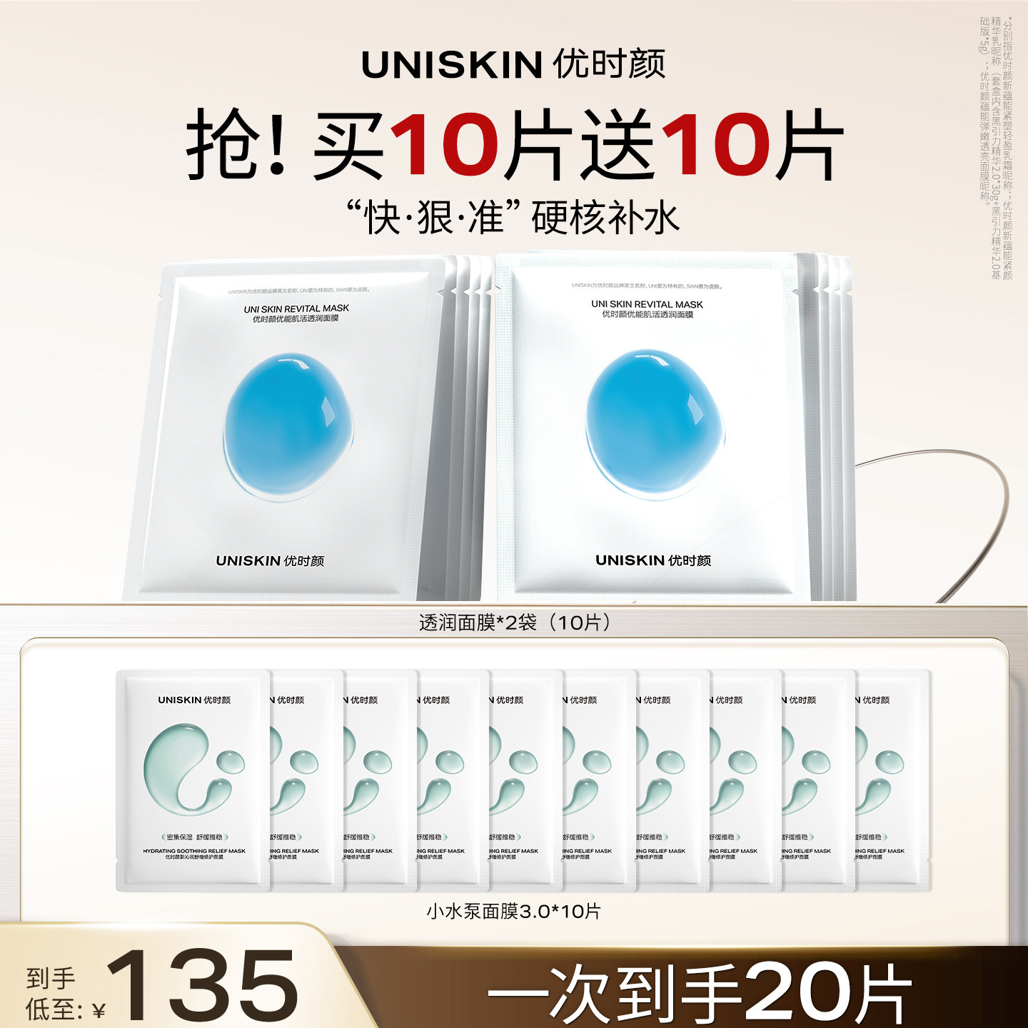 面膜补水保湿 优时颜UNISKIN透润保湿 滋润面膜 官方正品
