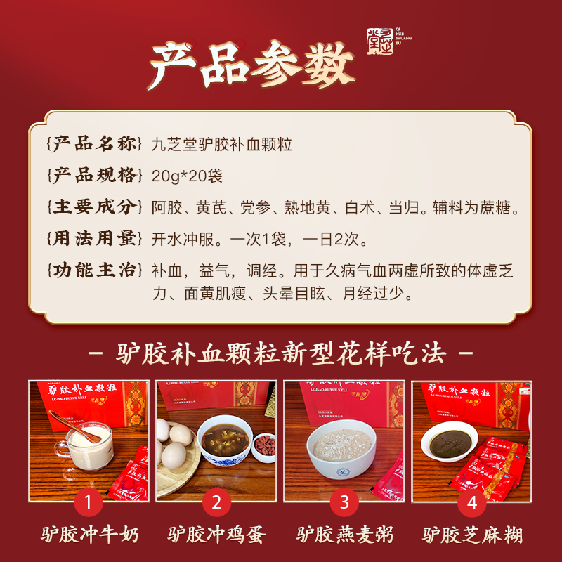 九芝堂驴胶补血颗颗粒补气血补血阿胶贫血血虚产后滋补正品