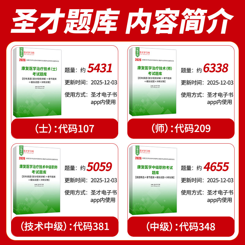 2026康复医学与治疗技术考试士师初级中级华励康复红宝书圣才康复题库含2025年真题及详解章节题库模拟试题冲刺试卷考点手册新大纲