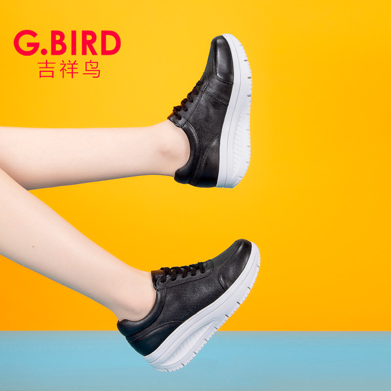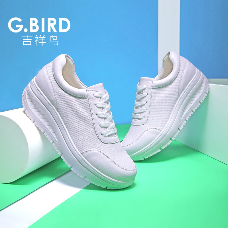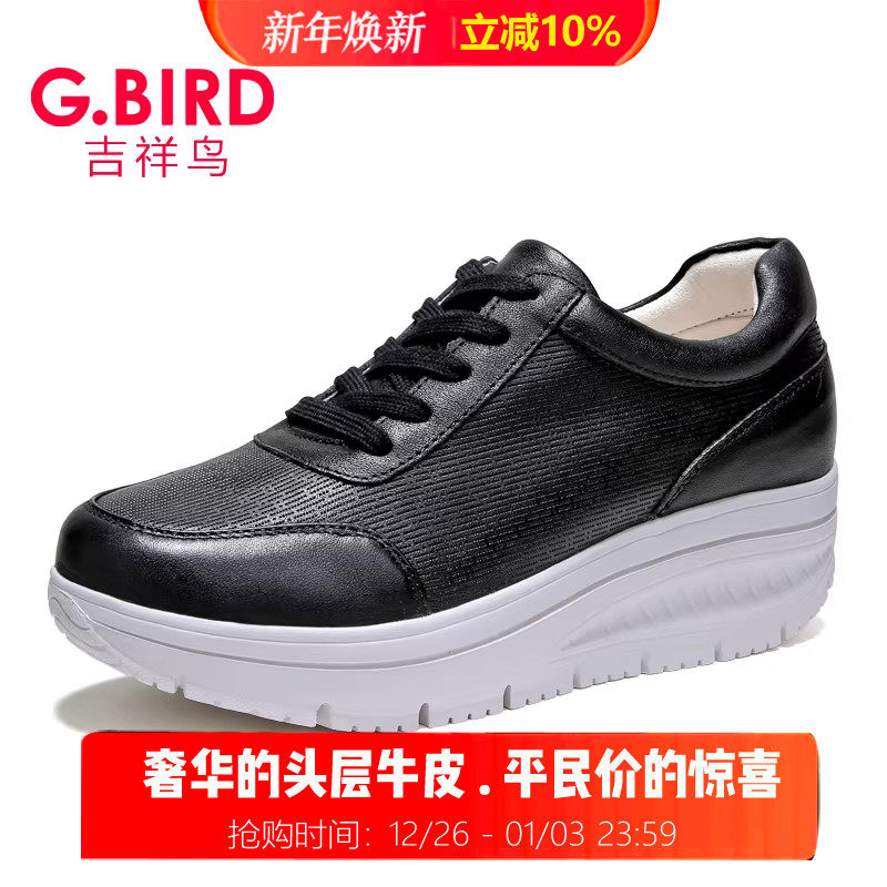 0710 单鞋 吉祥鸟超轻女鞋 2026春夏真皮休闲运动百搭松糕摇摇小白鞋