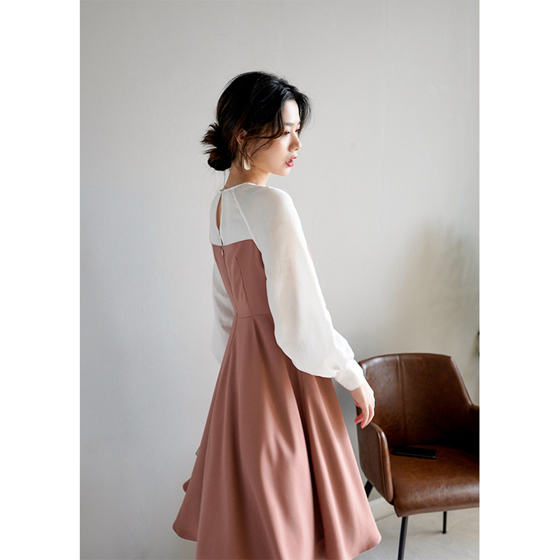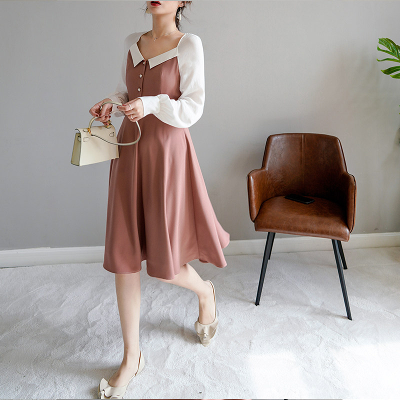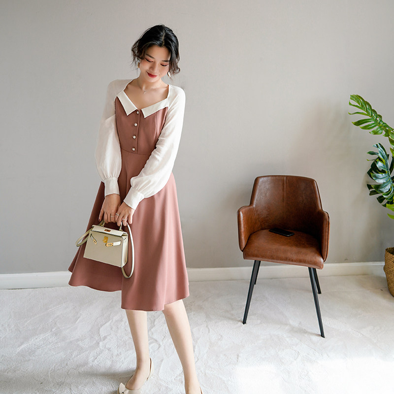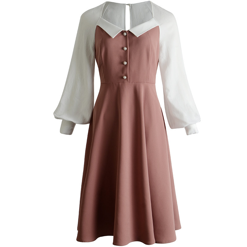 新款 Ron原创复古法式 方领连衣裙露锁骨慵懒风淑女裙子2020春装