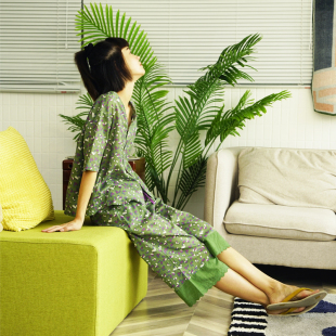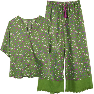 超薄纯棉绿色印花显瘦家居服套装 朵朵可可女睡衣2026春夏季 新款