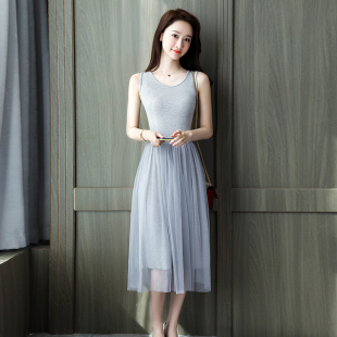 特价 莫代尔长裙背心纱裙纯色宽松内搭连衣裙 吊带网纱打底裙女夏装
