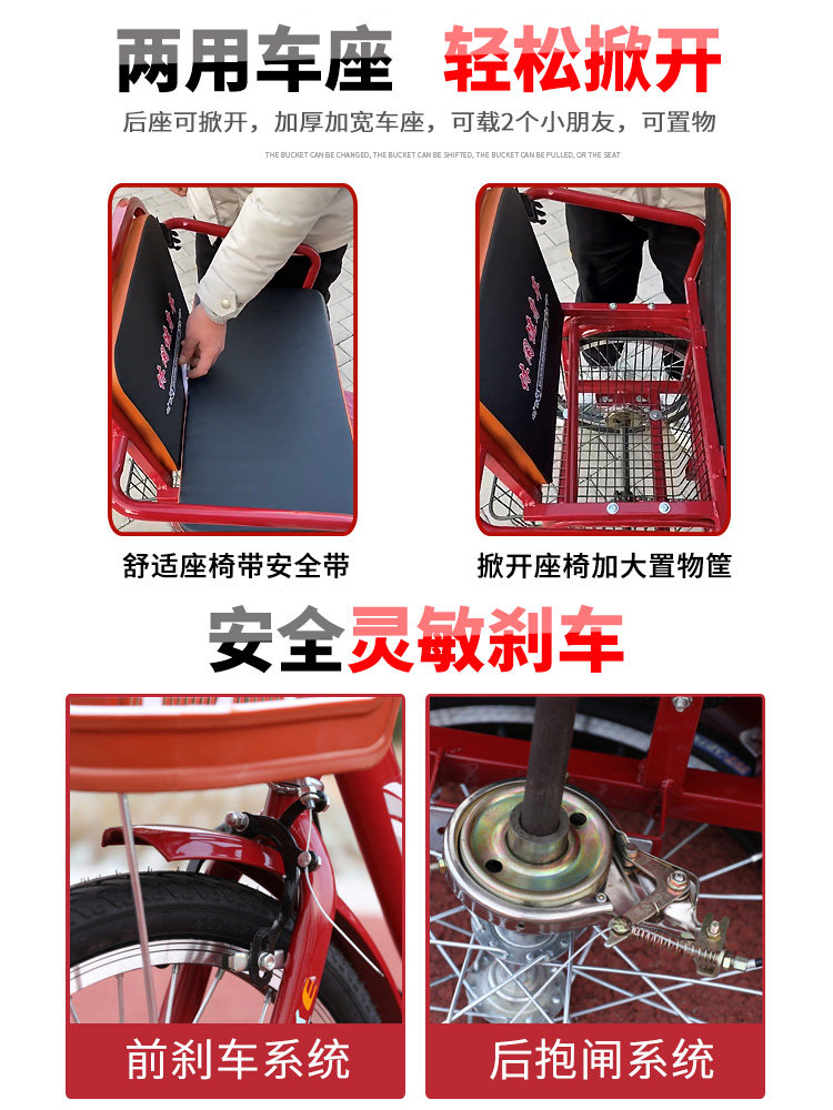 新款 老年三轮车人力车老人脚踏代步车双人车脚蹬自行车成人三轮车