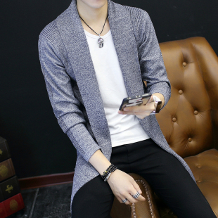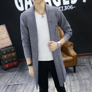 春秋季 开衫 韩版 长款 外套衣服装 男士 潮流个性 青少年 风衣毛衣针织衫