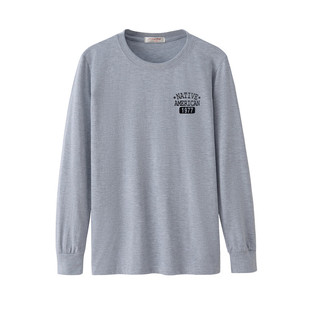 2025春秋长袖 休闲宽松 t恤男中老年加肥加大圆领秋衣纯棉上衣薄款