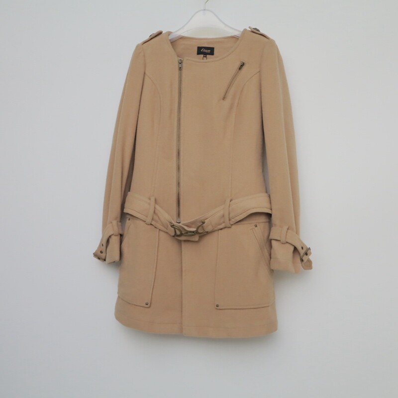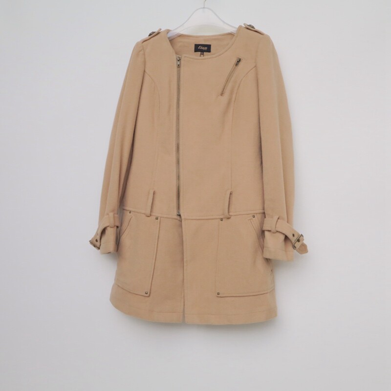 艾格淘特S 女秋冬拉链斜门襟毛呢外套E4176浅驼 M专柜撤柜正品