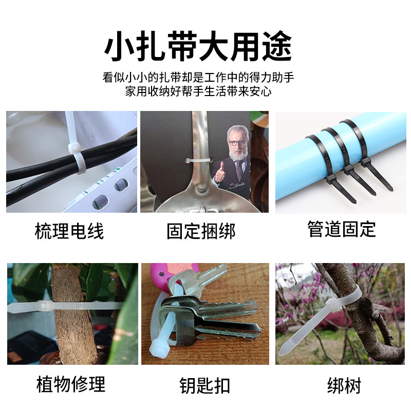 塑料卡扣一次性固定捆绑束带勒死狗绳 国标尼龙扎带 200mm自锁式