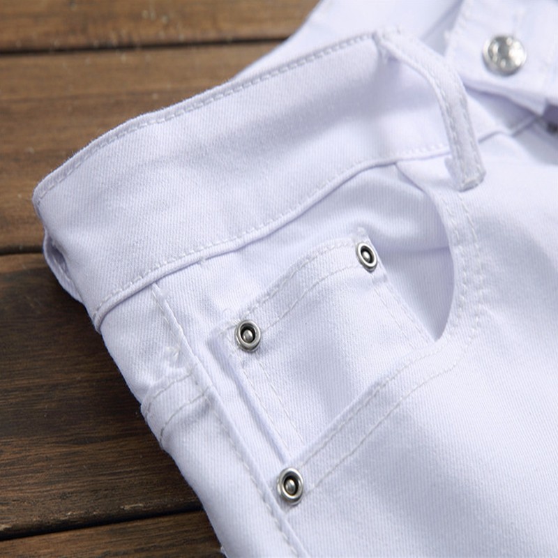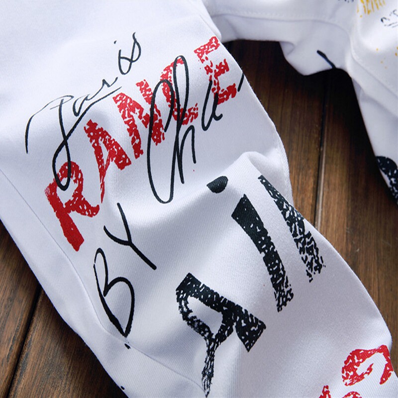 长裤 白色印花牛仔裤 花裤 子男士 个性 发型师潮流春秋季 青年休闲修身