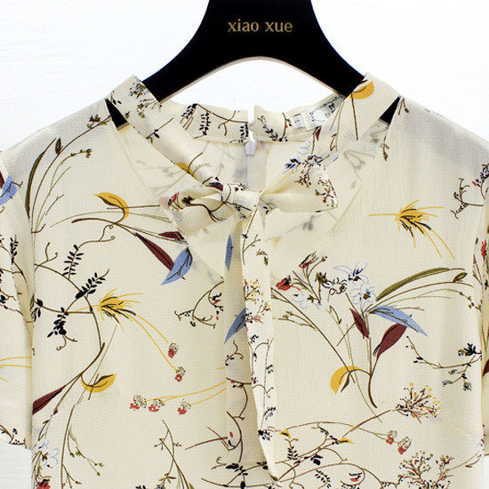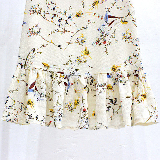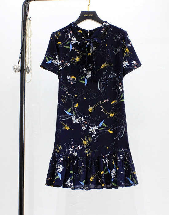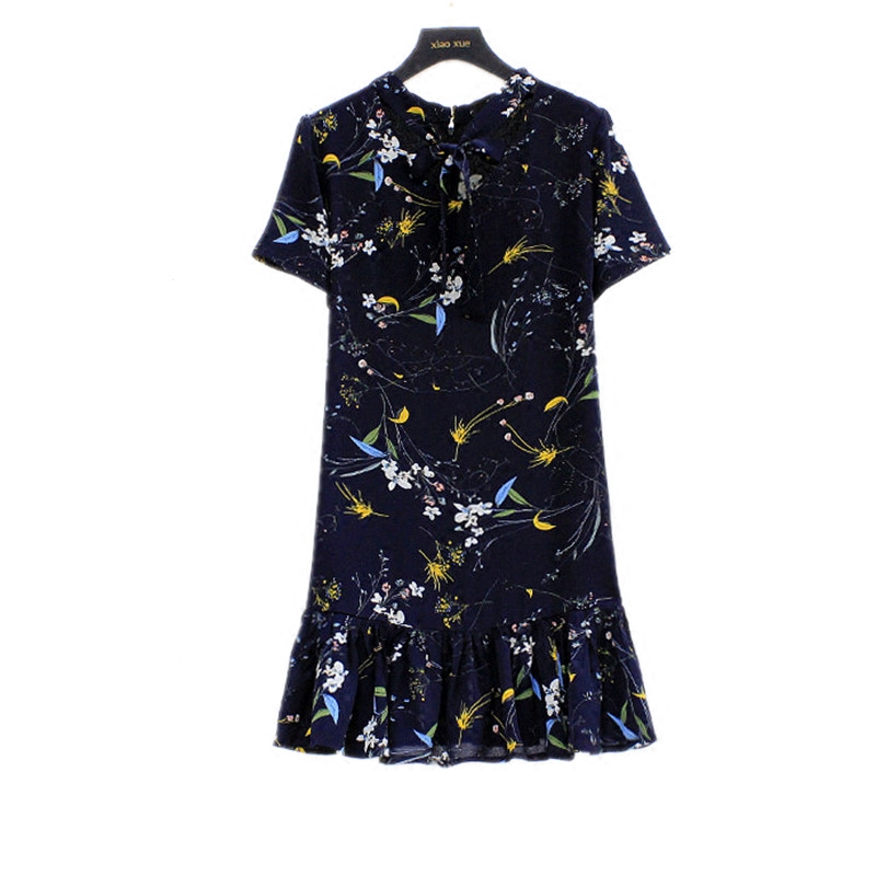 a字裙荷叶边中长款 夏季 V领碎花雪纺连衣裙显瘦短袖 大码 女清仓 新款