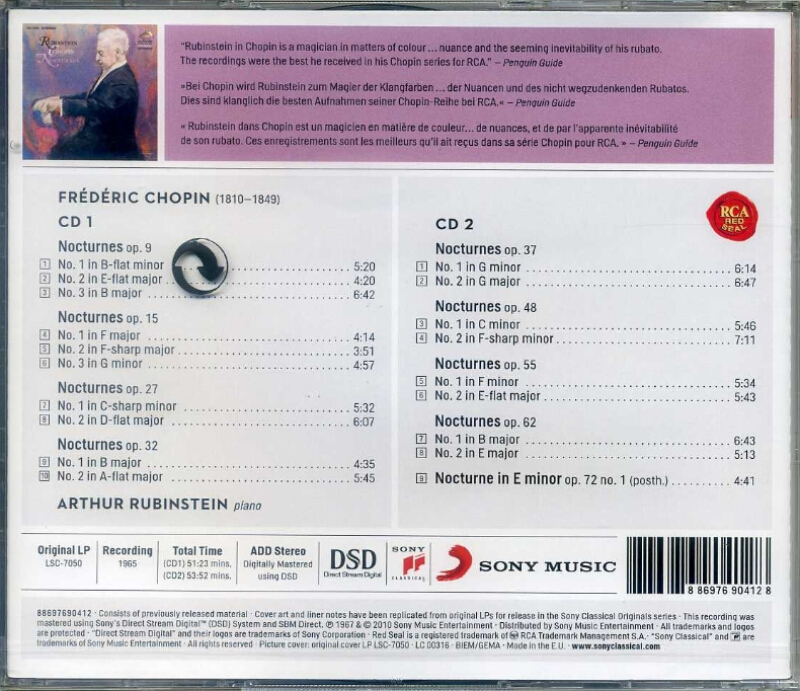 肖邦夜曲全集 进口CD碟 鲁宾斯坦 原版 古典音乐 钢琴曲 正版
