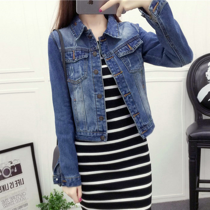 女装 韩版 弹力百搭水洗破洞修身 长袖 牛仔外套 冬装 短款 新品