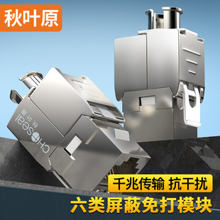 秋叶原七类屏蔽免打网络模块网线超五 六类面板模块电脑信息百兆千兆非屏蔽网络RJ45网络90度弯头万兆插座