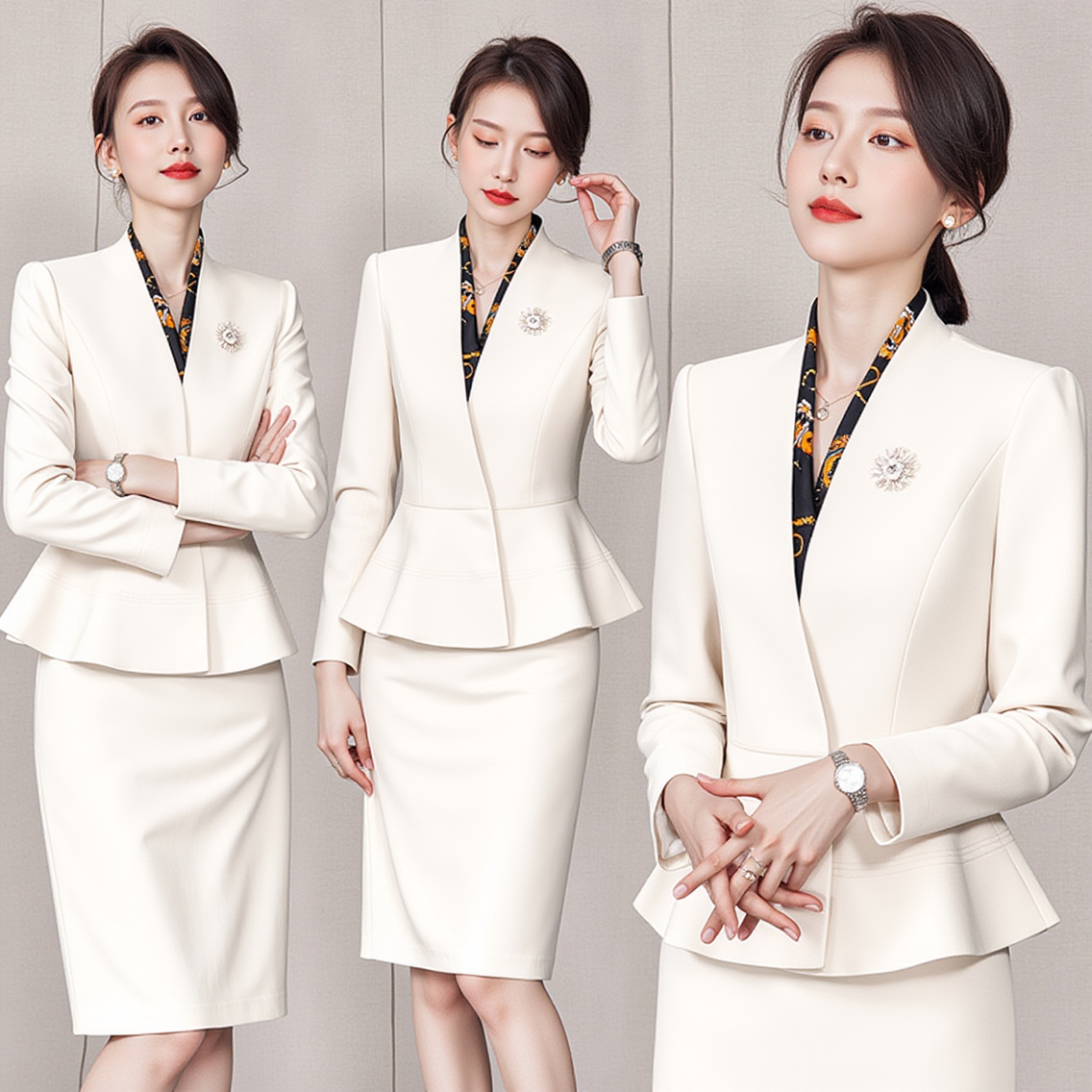 春季 女神范气质餐饮酒店大堂迎宾制服主持案场工作服 高端职业套装