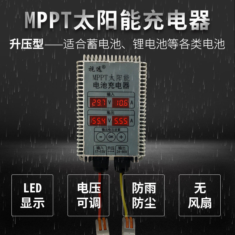 升压MPPT太阳能充电控制器24 85V电压可调带显示全自动电动车防水