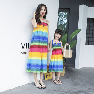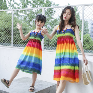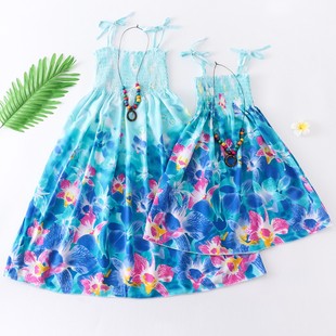 儿童沙滩裙棉绸大小女童连衣裙女宝宝女孩夏季 洋气裙子 亲子母女装