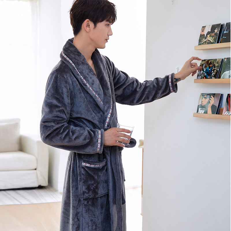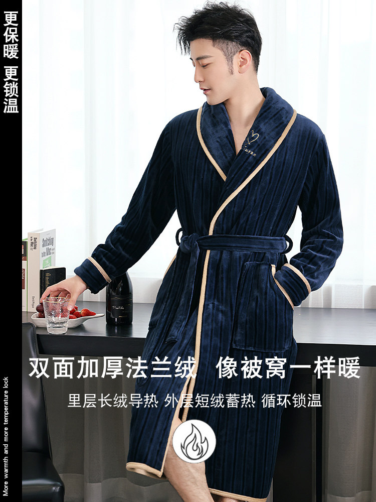 浴衣男士 加绒新款 浴袍 珊瑚绒睡袍冬季 睡衣男秋冬法兰绒加厚加长款