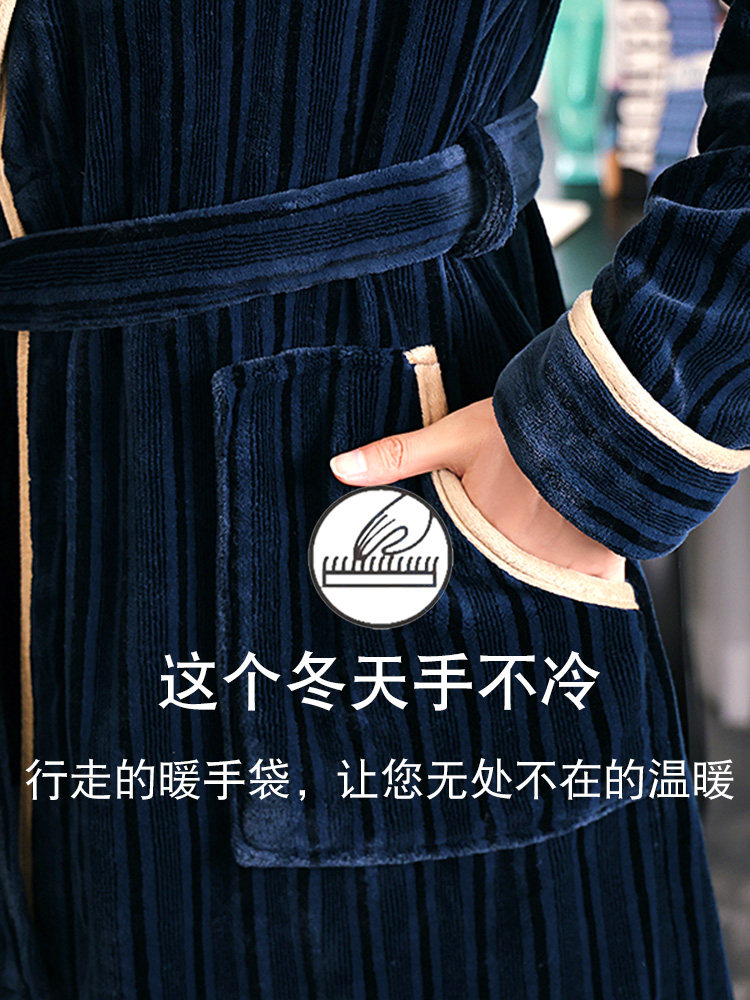 长款 2025珊瑚绒保暖睡衣男士 浴袍秋冬浴衣 新款 加厚加绒睡袍男冬季