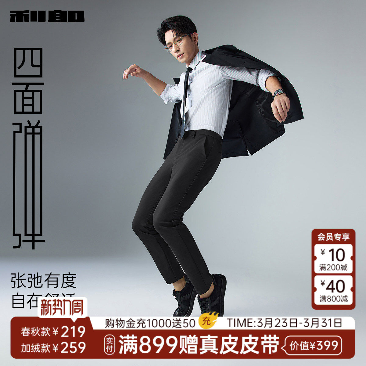 男士 2026春秋款 裤 四面弹力 子 男装 利郎官方商务休闲裤 男裤 西裤