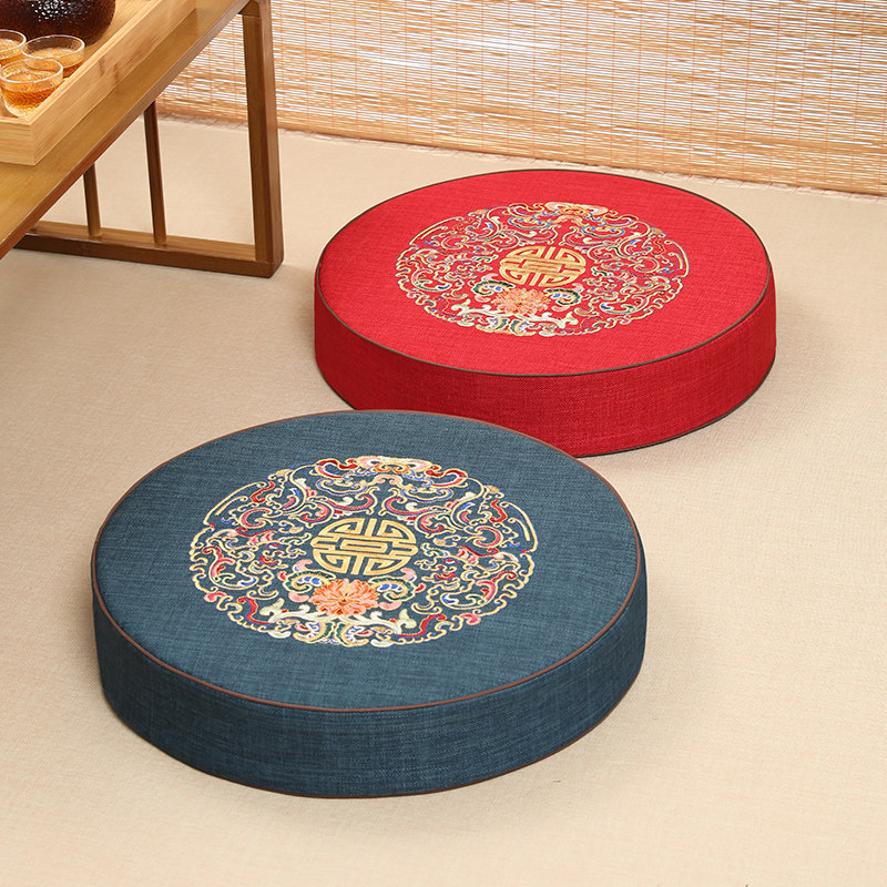棉麻蒲团坐垫加厚布艺圆形日式 阳台飘窗榻榻米窗台地板打坐可拆洗