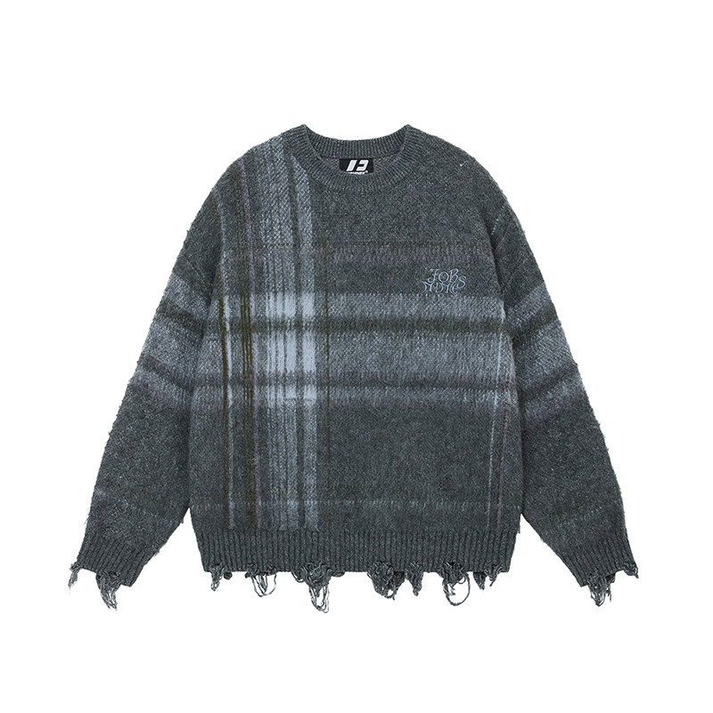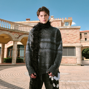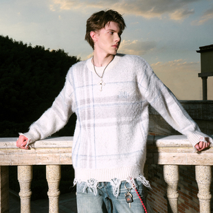 FORNINES原创马海毛格子破坏感慵懒毛衣男女情侣秋冬款 上衣 针织衫
