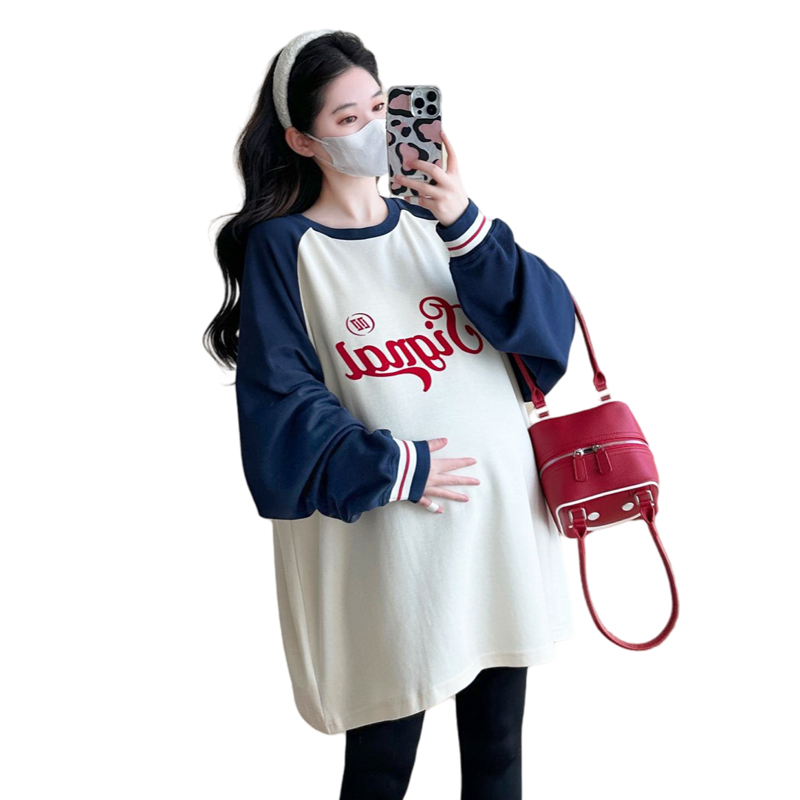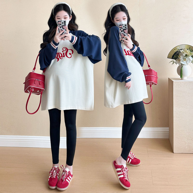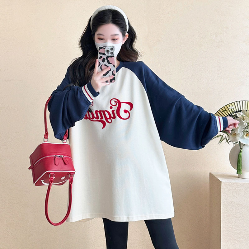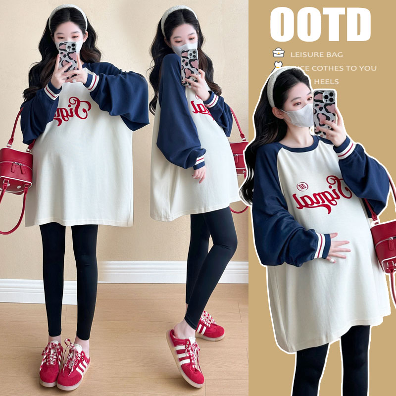 春秋款 套装 300韩版 宽松卫衣潮妈时尚 上衣200斤 大码 拼色长袖 孕妇装