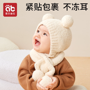 毛线帽子女秋冬百搭加绒加厚护耳针织帽鸭舌保暖帽显脸小围巾可爱
