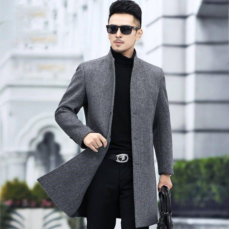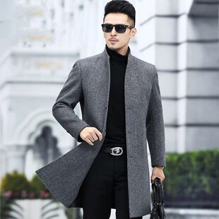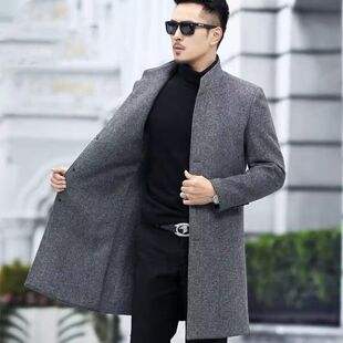 立领毛呢风衣轻奢商务休闲韩版 时尚 外套帅 呢大衣男中长款 秋冬新款