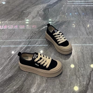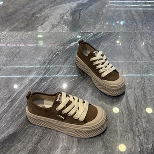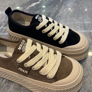 增高松糕小白帆布鞋 真皮厚底饼干鞋 百搭休闲板鞋 秋季 子 女2025新款