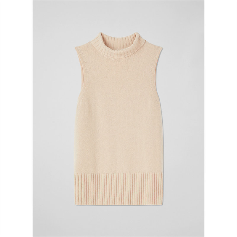 高领无袖 lkbennett驼色绵羊毛背心秋新款 针织 朱珠同款