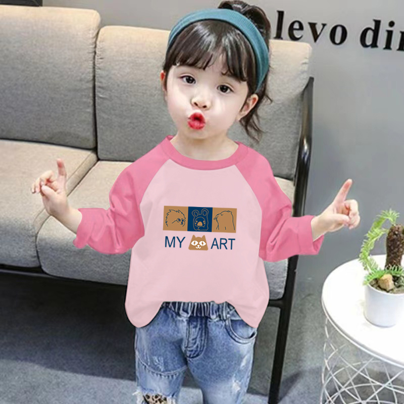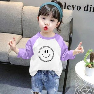 100%纯棉女童拼色长袖 儿童宝宝洋气百搭打底上衣 t恤2025春秋新款