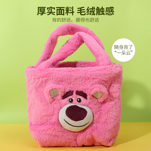 miniso名创优品迪士尼草莓熊毛毛狂欢双面毛绒包可爱奇奇蒂蒂单肩