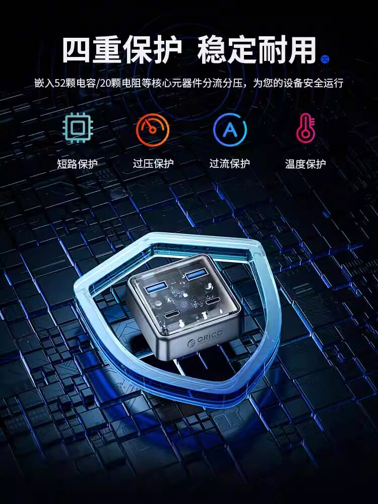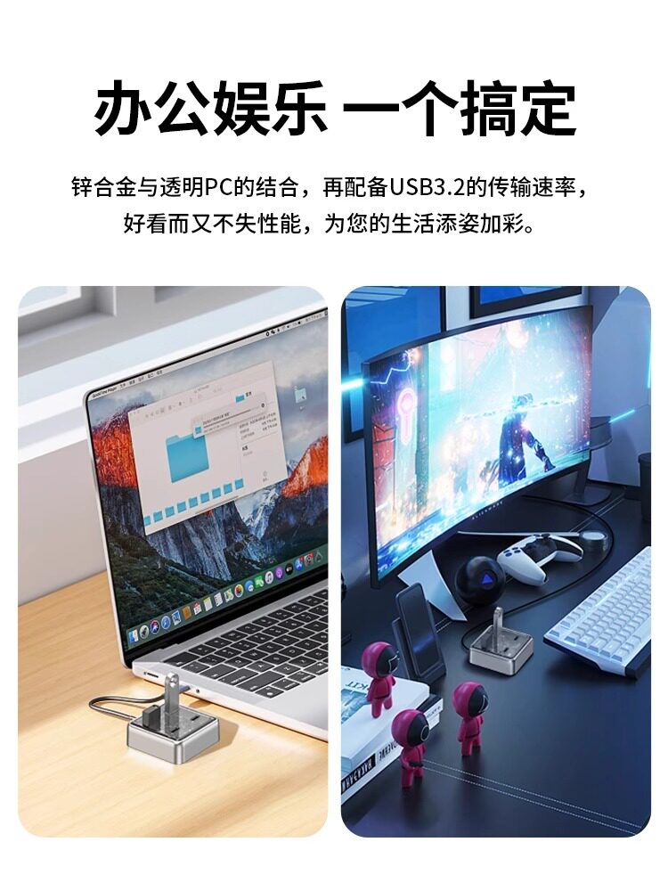 奥睿科usb扩展器电脑多接口创意分线器hub3.2Gen1桌面透明拓展坞typec扩展坞转接头带供电笔记本平板转换器