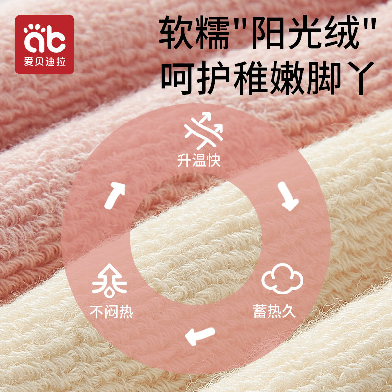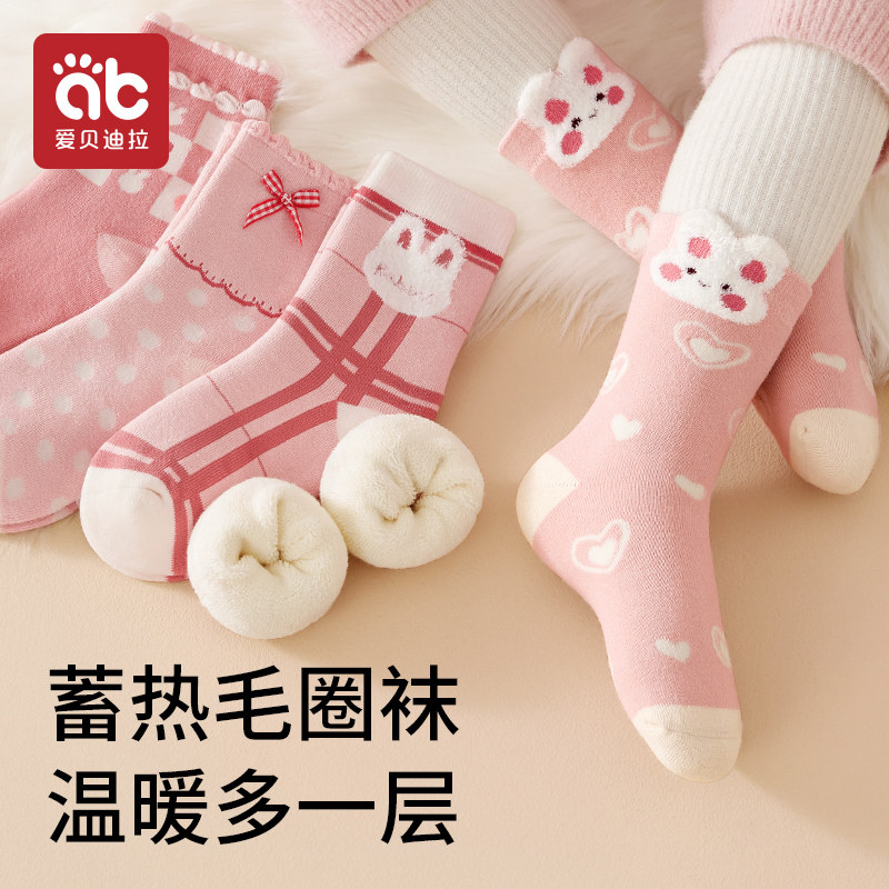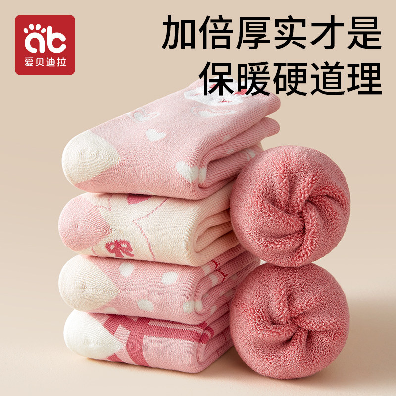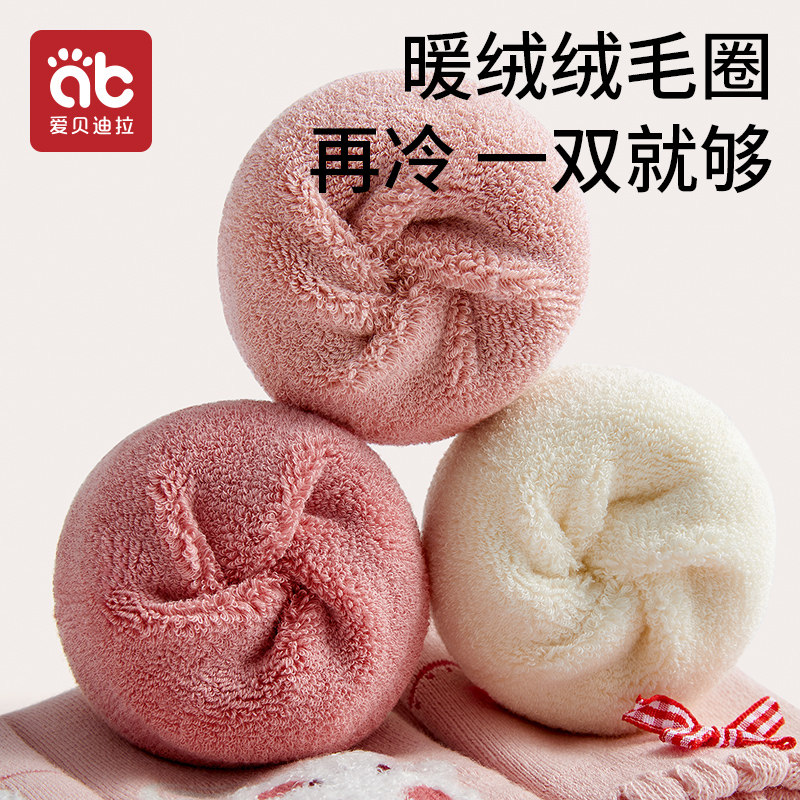 儿童袜子秋冬季 保暖中筒大童袜 女童加厚加绒毛圈袜女宝宝纯棉冬款