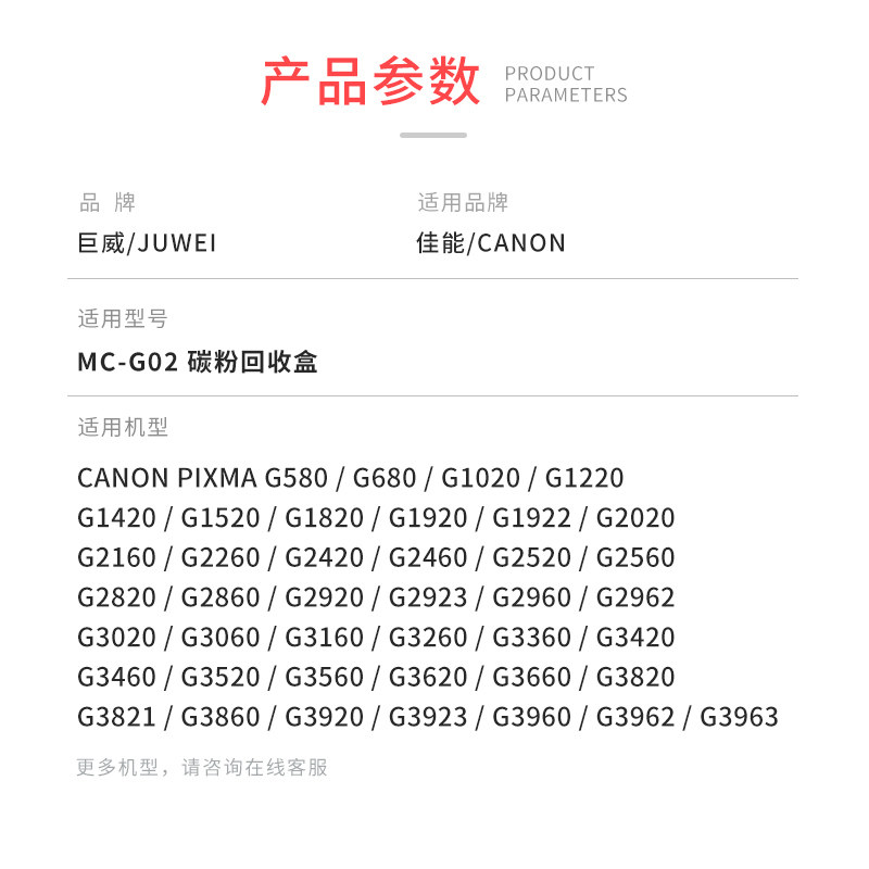 G2020 G3860 G3821 适用佳能MC 2962 G1820 G3820废墨仓G2860 G680打印机废墨盒 G02保养墨盒G580维护箱G1020