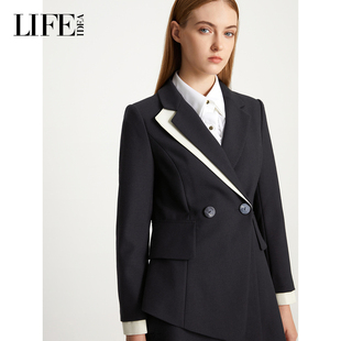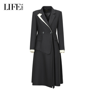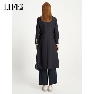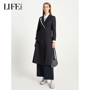 气质羊毛毛呢外套 新品 LIFE·IDEA撞色收腰长款 大衣女冬装