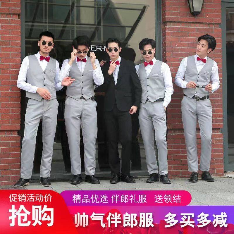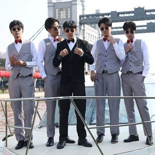 金竹刺绣男孩成人礼服西装 新中式 国风立领中山装 订婚衣服套装 男士