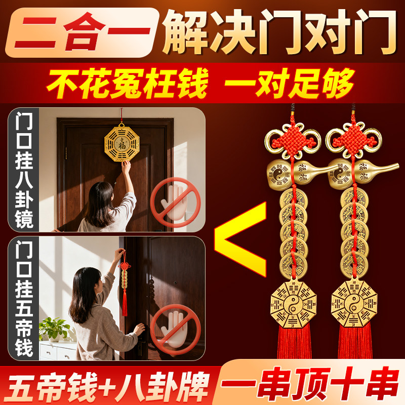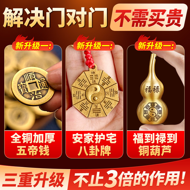 五帝钱葫芦挂件门对门铜葫芦中国结古钱卧室门真品铜钱入户门