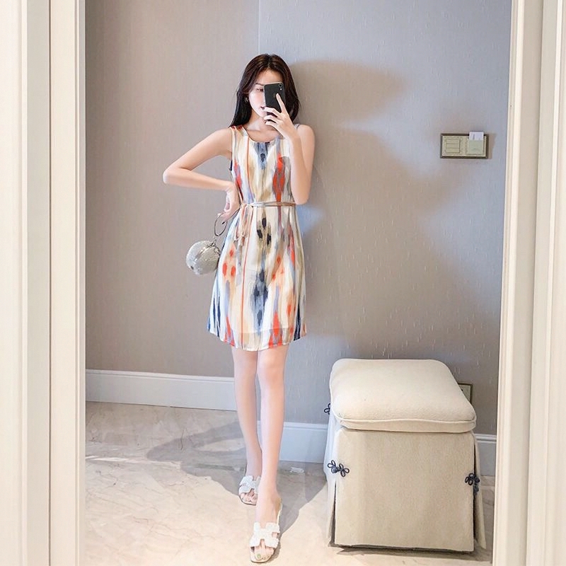 遮肚子雪纺连衣裙女装 气质显瘦小个子超仙裙子修身 潮夏季 2025新款