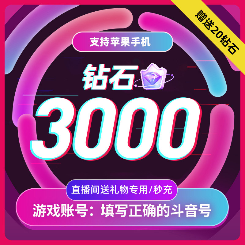 抖币充值秒到账普通抖音钻石冲值dy抖音币3000抖充币音抖充币300