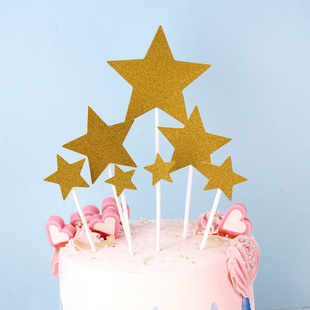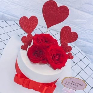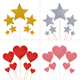 爱心插件情人节蛋糕装 饰插牌七夕网红心形插卡星星五角星生日配件