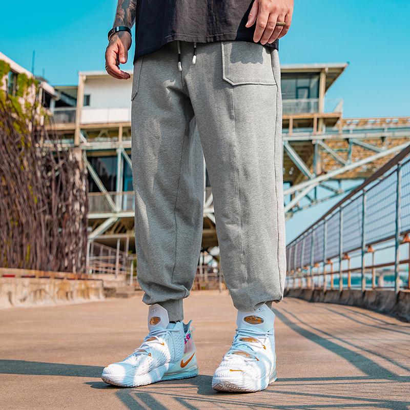 长裤 灰色抽绳束脚弯刀卫裤 女秋冬加绒加厚高腰百搭宽松阔腿休闲裤