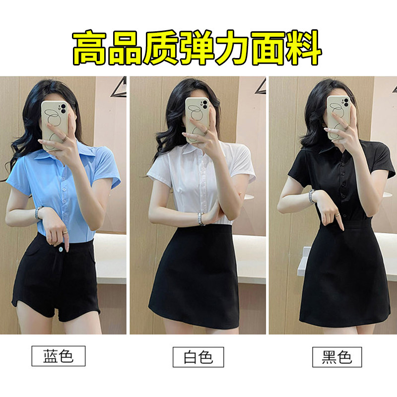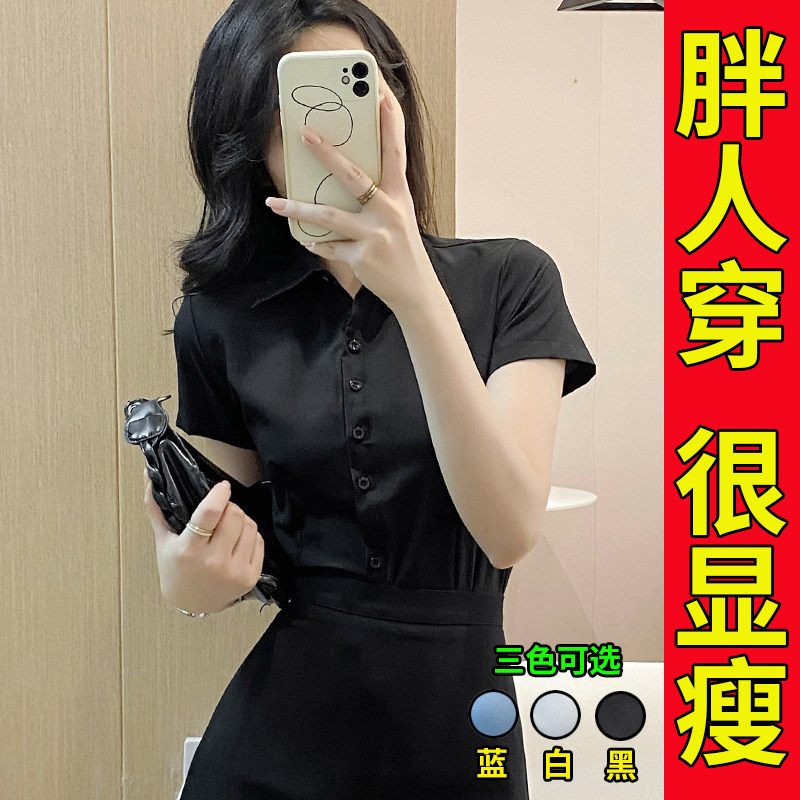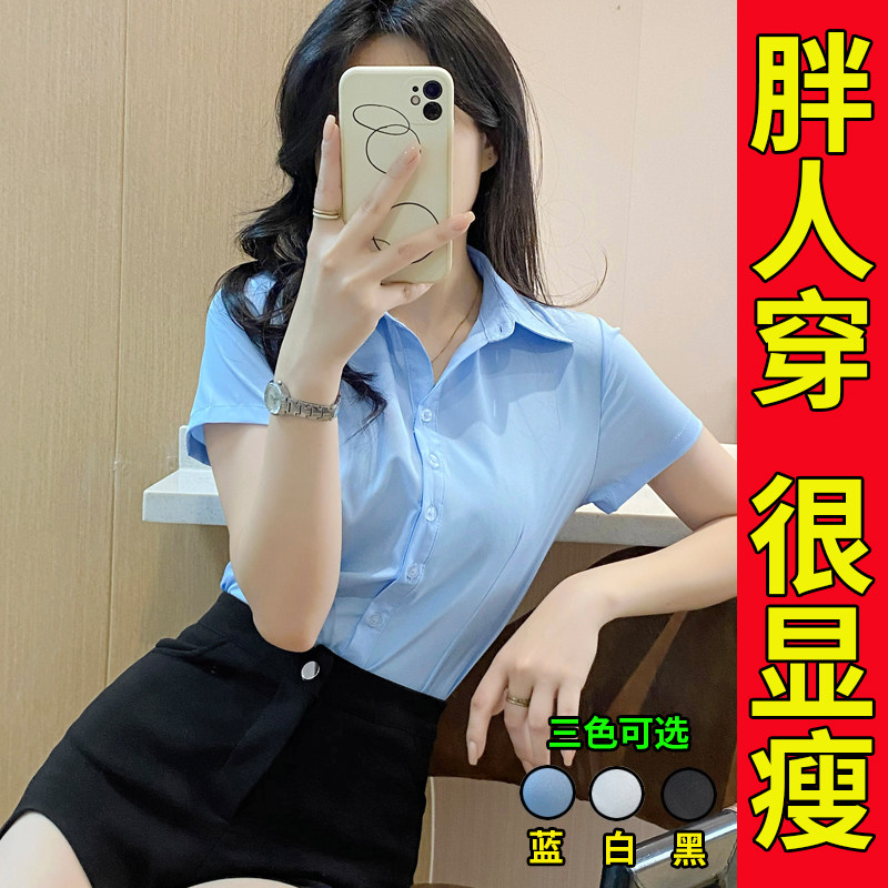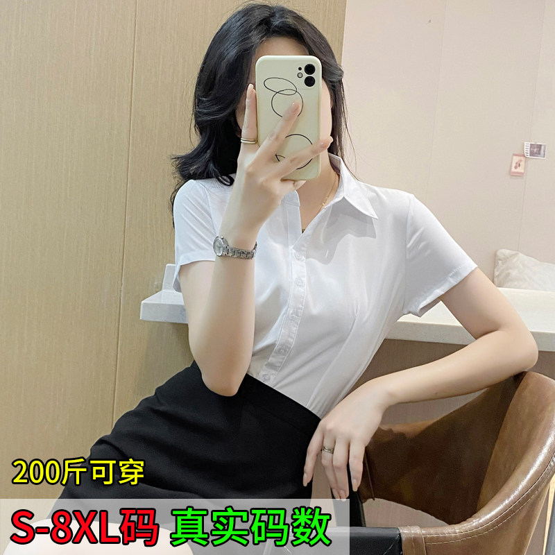短袖 职业弹力胖mm200斤白色衬衣上衣寸衫 衬衫 通勤正装 女夏款 大码